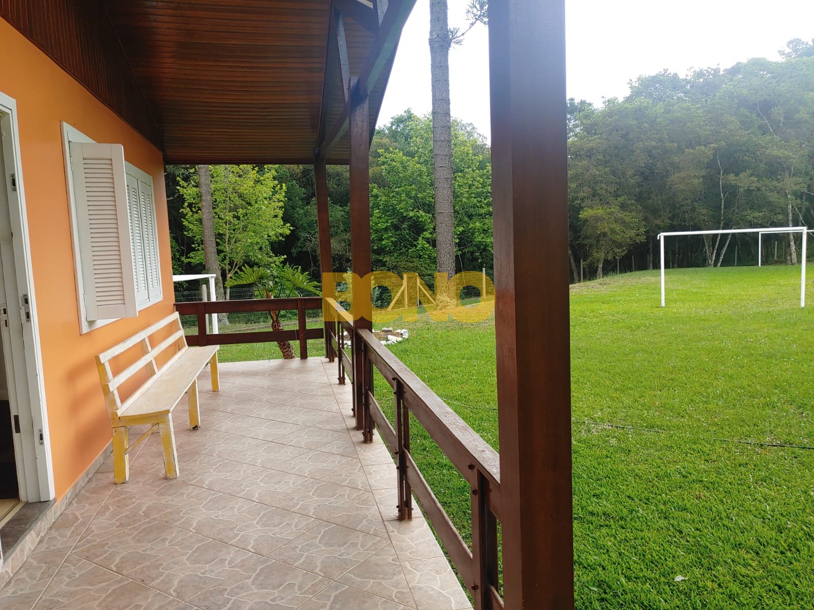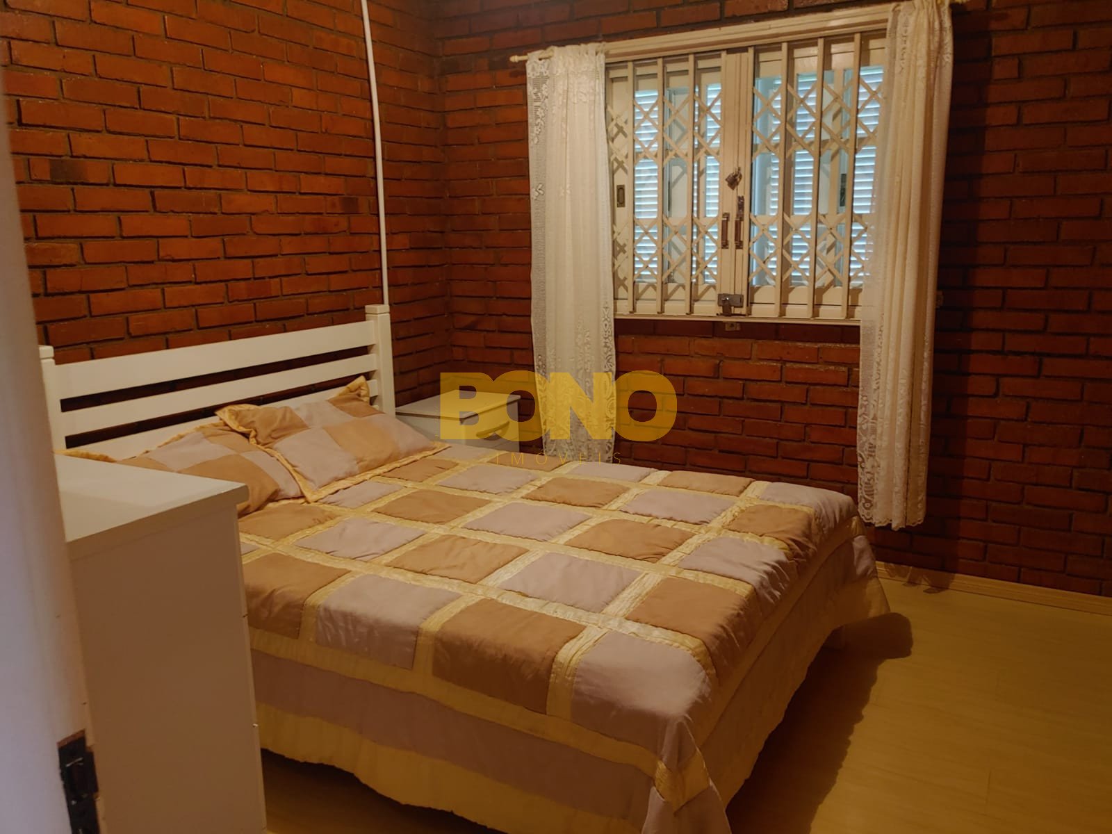 A casa possui lareira, móveis e está em ótimo estado de conservação. A construção é em alvenaria e as esquadrias são de madeira.