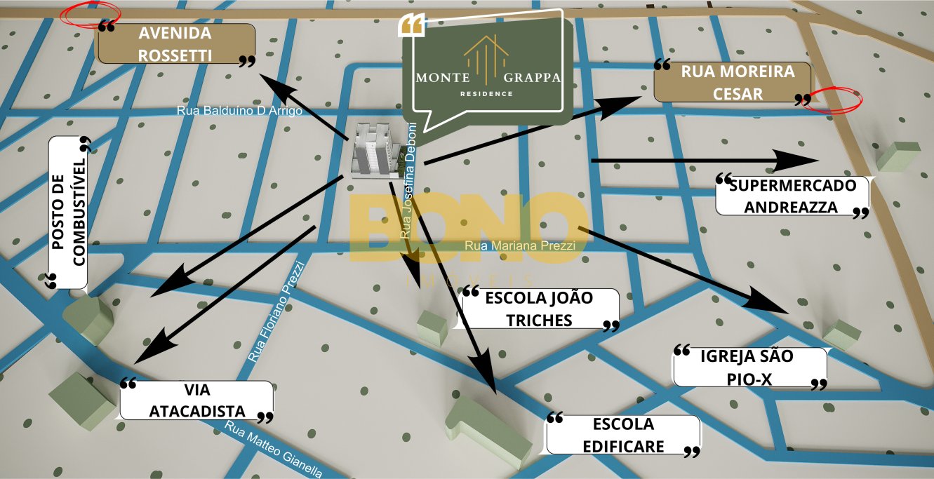 O Residencial Monte Grappa está localizado no coração da cidade de Caxias do Sul, no bairro Pio-X. Fica próximo ao centro com fácil acesso e pertinho de tudo, seja mercados, escolas, postos de combustível, enfim, conta com uma rede de comércio e serviços completa.