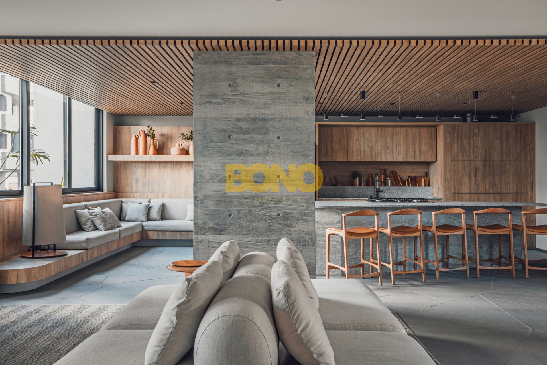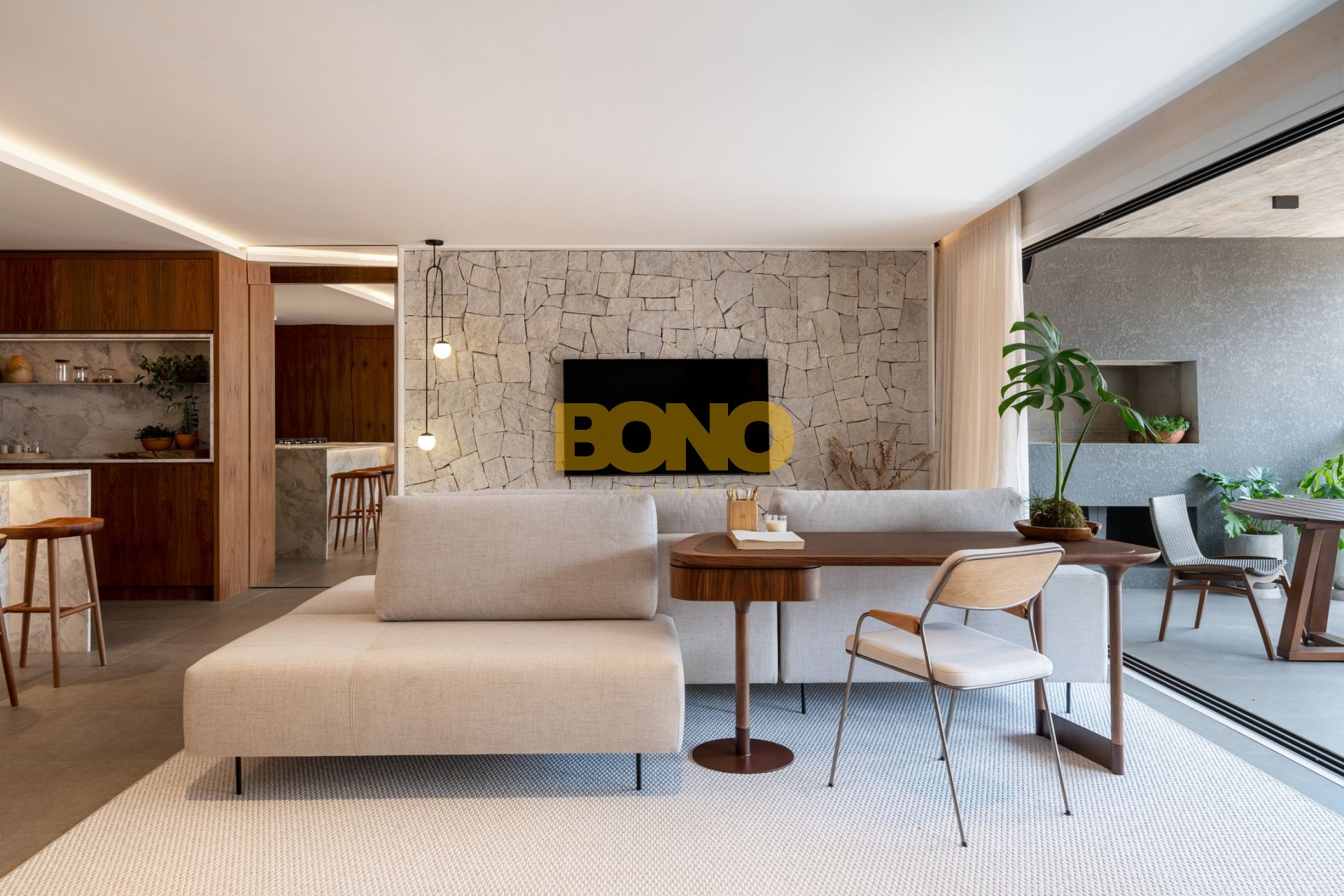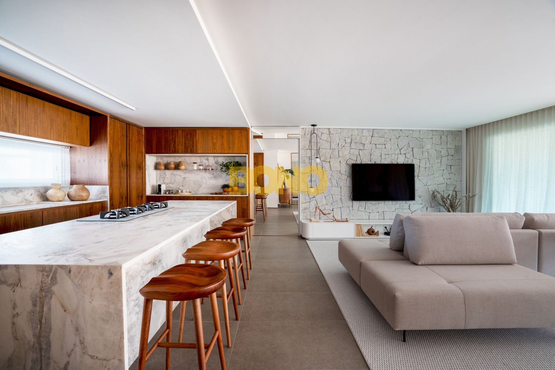 . Ampla sacada gourmet, com peitoril de vidro e integração com o estar e jantar