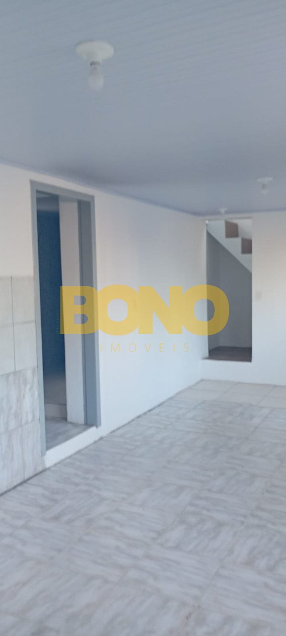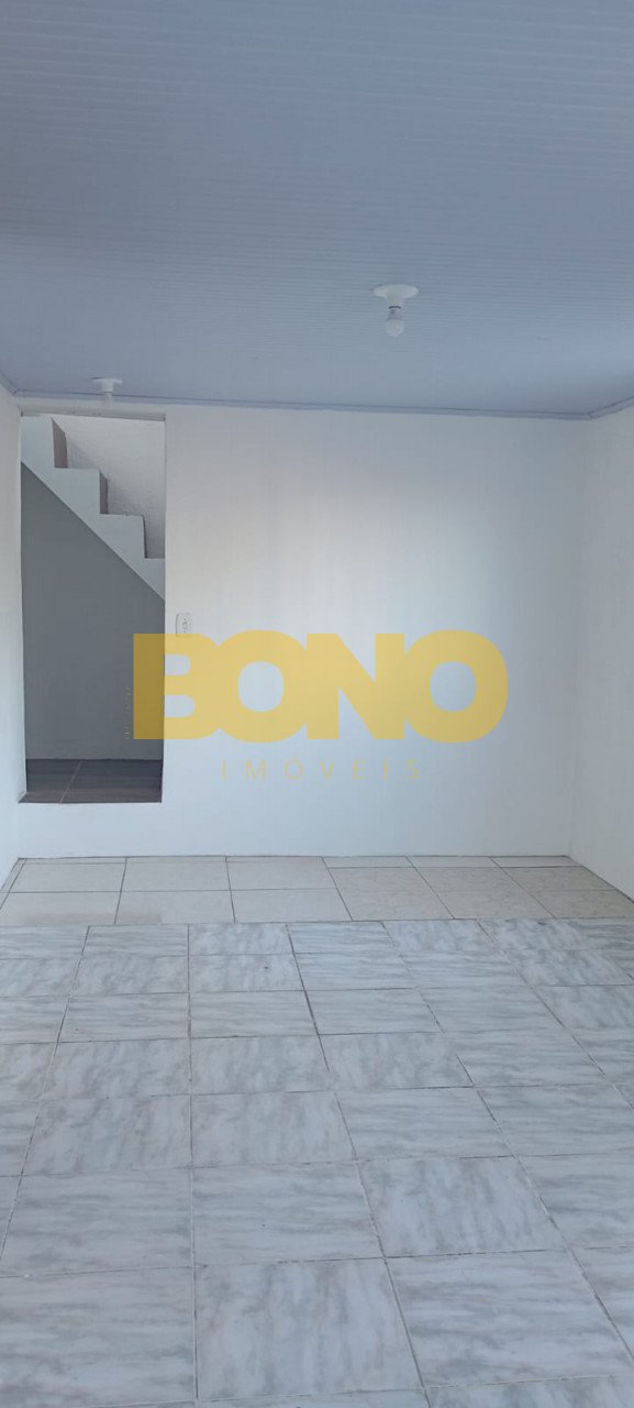 Bono imóveis aluga casa de alvenaria no bairro charqueadas. São dois pisos, piso superior com sala, banheiro e 2 quartos, piso inferior com sala e cozinha, churrasqueira, área de serviço, banheiro e pátio. Estacionamento para 1 carro.