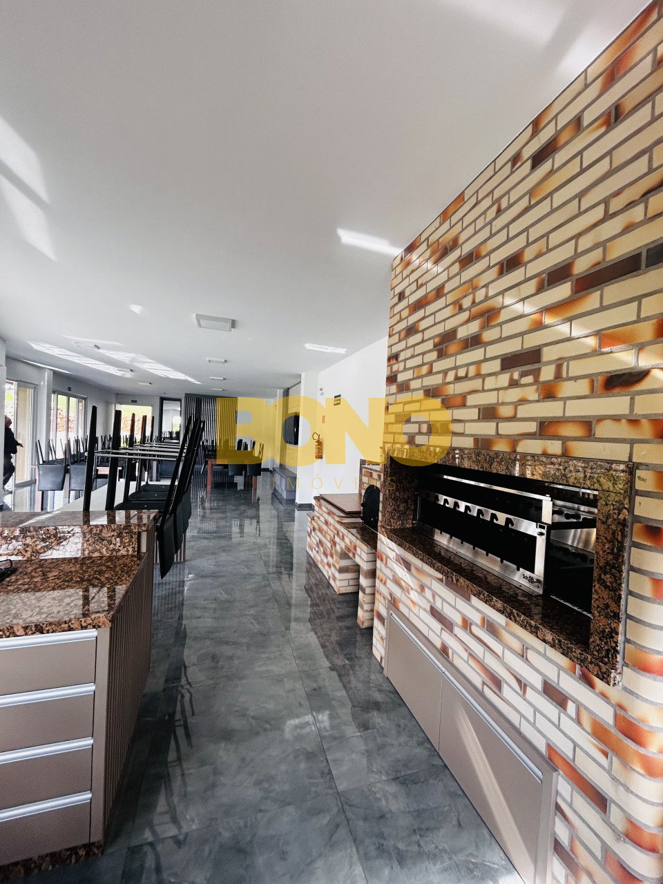 Área de lazer com salão de festas para até 50 pessoas e quadra poliesportiva