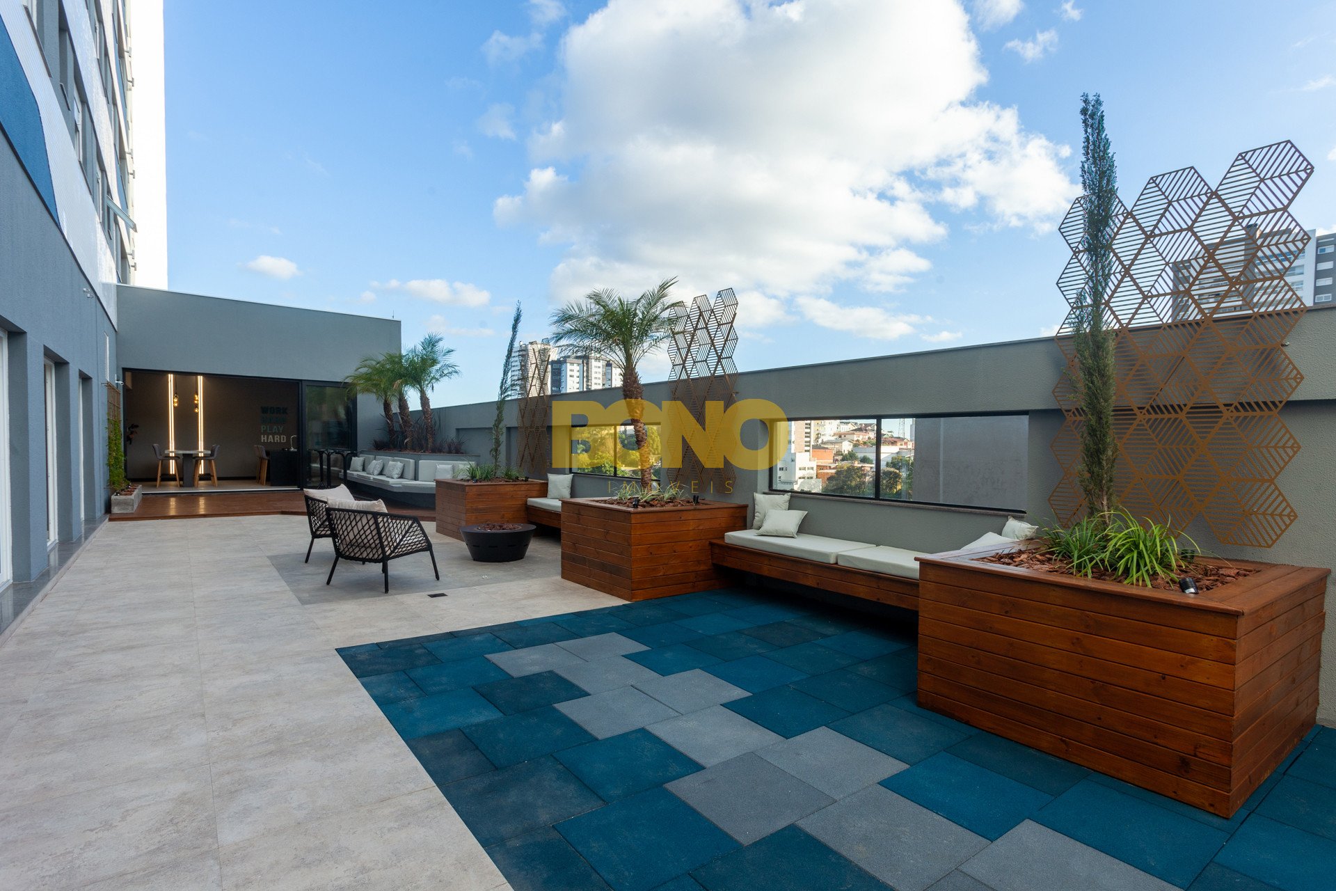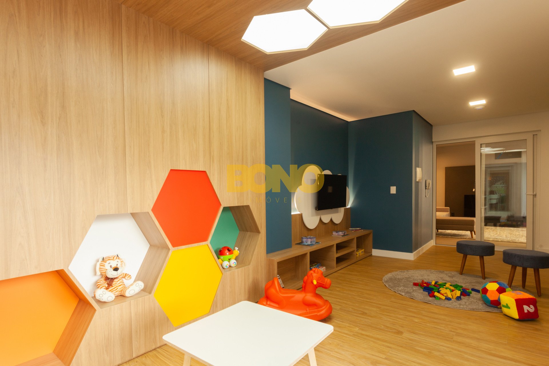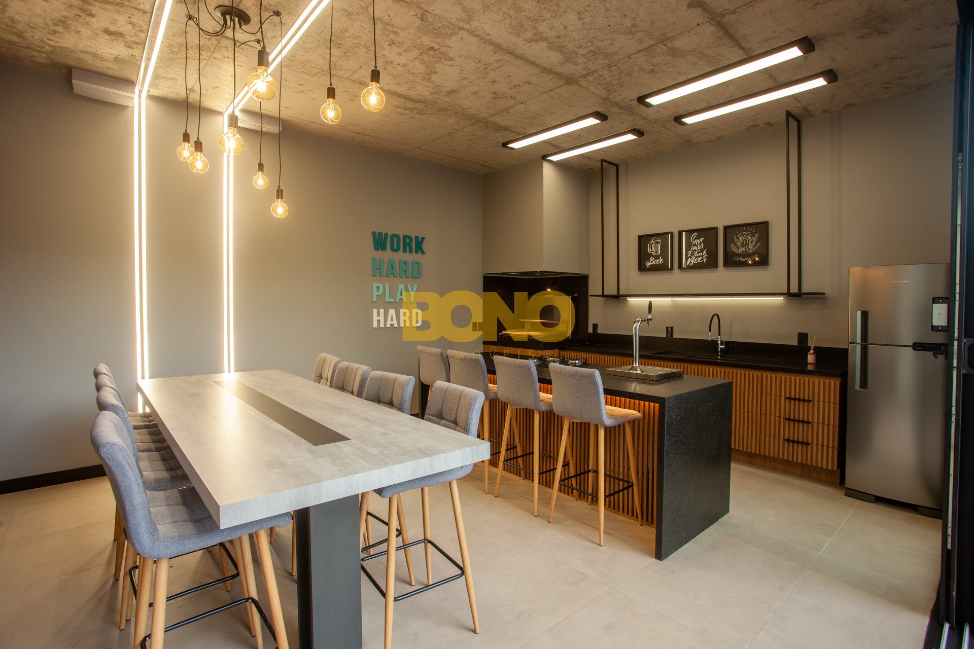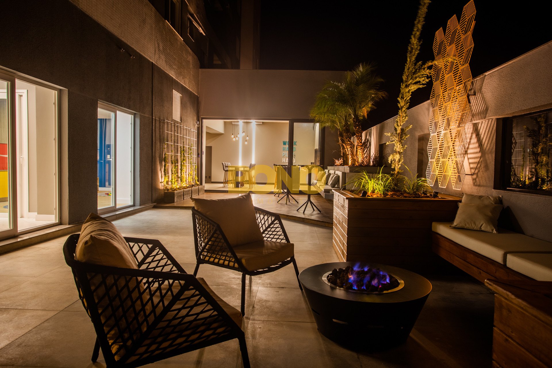 Hall de entrada elegante, espaço saúde, salão de festas com churrasqueira, lounge, espaço kids, pub, deck, terraço com lareira , playground, bosque privativo de 700m , lavanderia coletiva e vaga para carregamento de carro elétrico.
