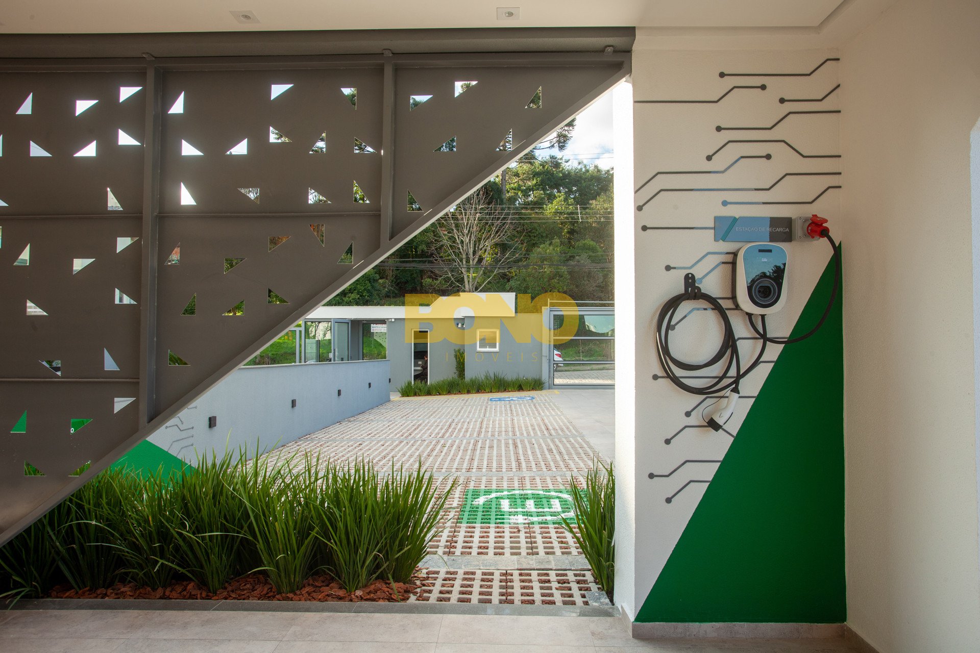 Ele conta com energia solar fotovoltaica, aquecimento solar de água, aproveitamento da água da chuva e guarita pronta para operação remota, reduzindo custos do condomínio.