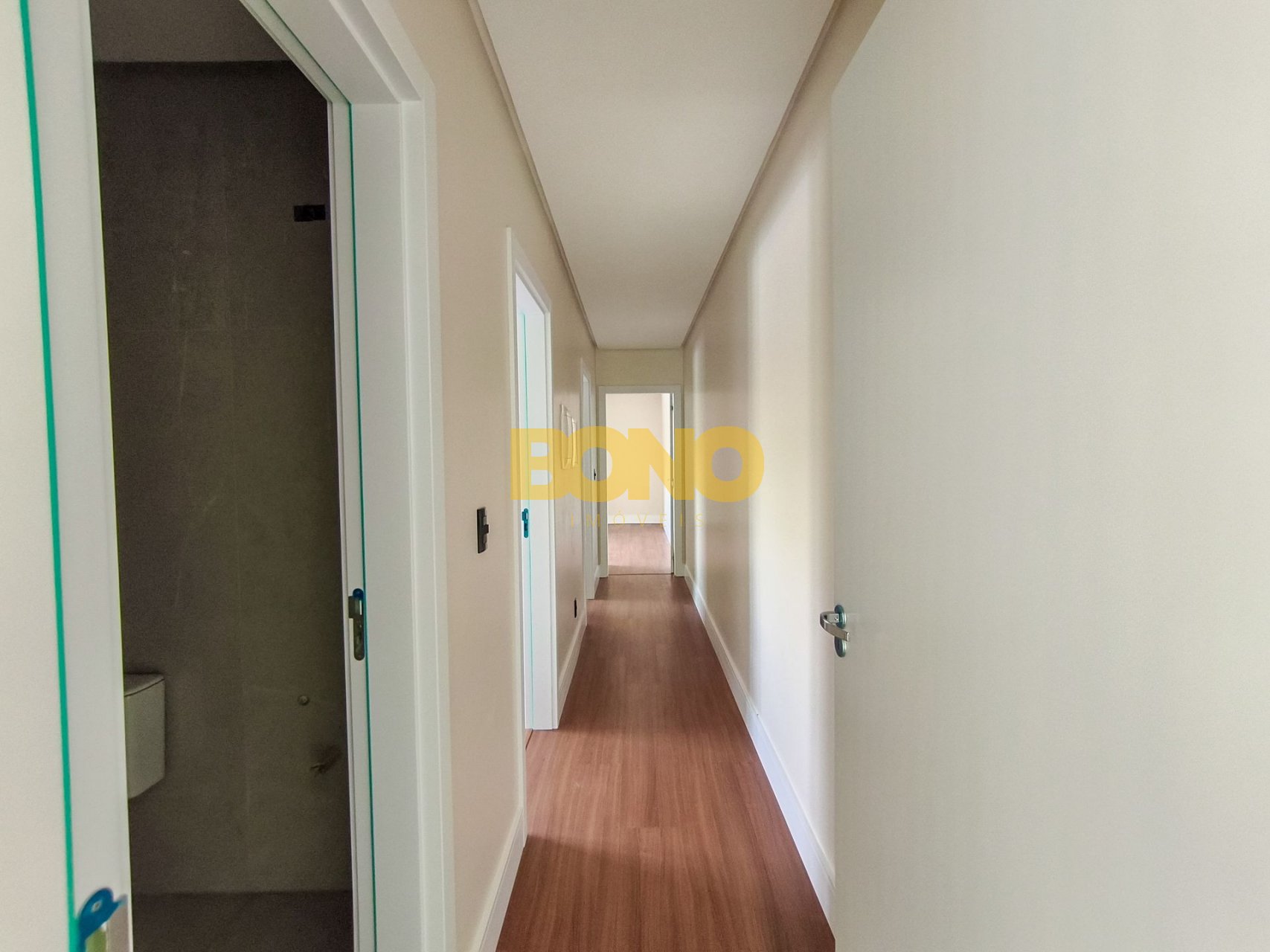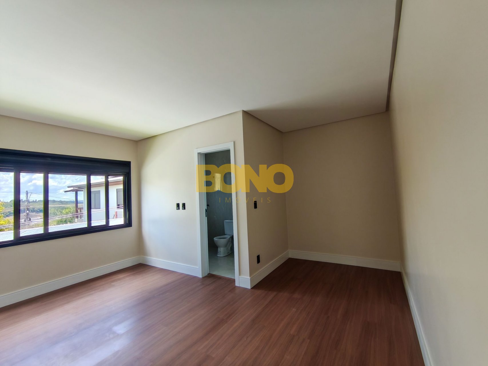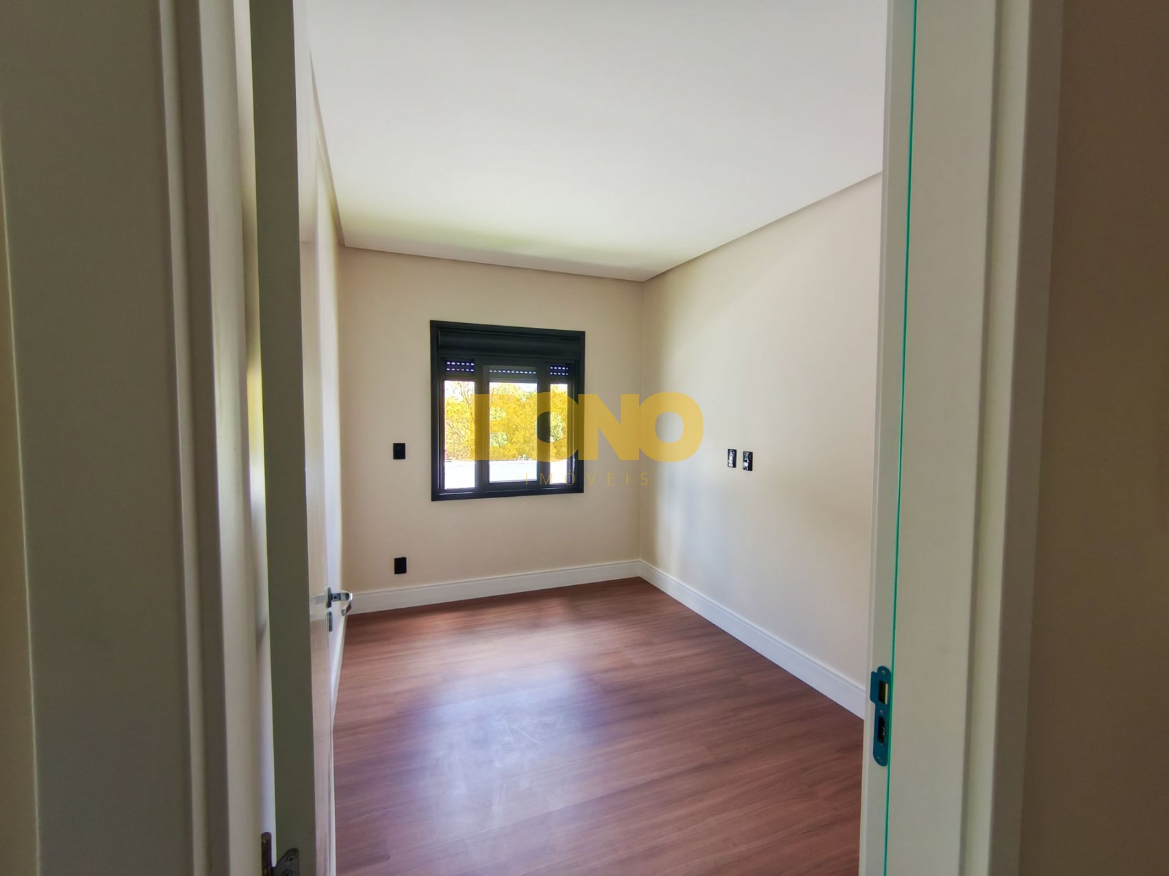 Laminado Premium nos dormitórios, com rodapé de 15 cm, proporcionando maior elegância e acabamento superior