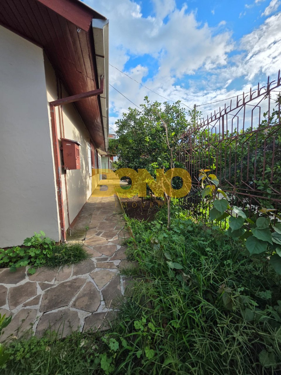 Casa de esquina, com cercamento e portão eletrônico.