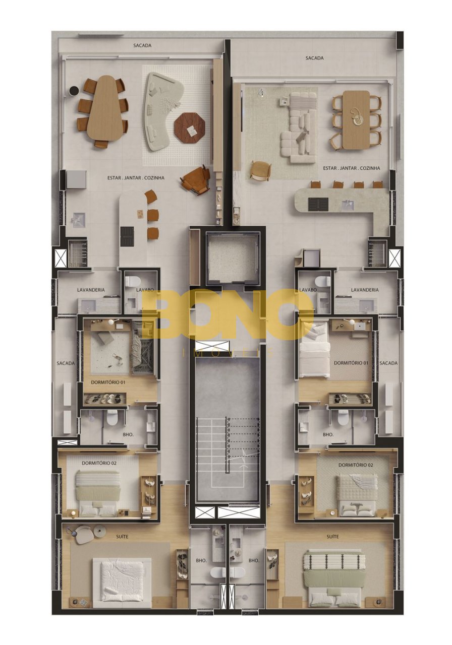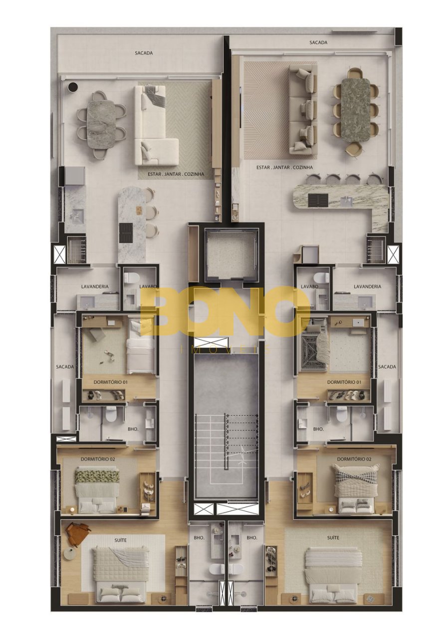 Com apartamentos de 132 m privativos, o projeto apresenta plantas inteligentes e bem distribuídas, com três suítes e acabamentos de alto padrão, atendendo a um público exigente que busca sofisticação, funcionalidade e localização privilegiada.